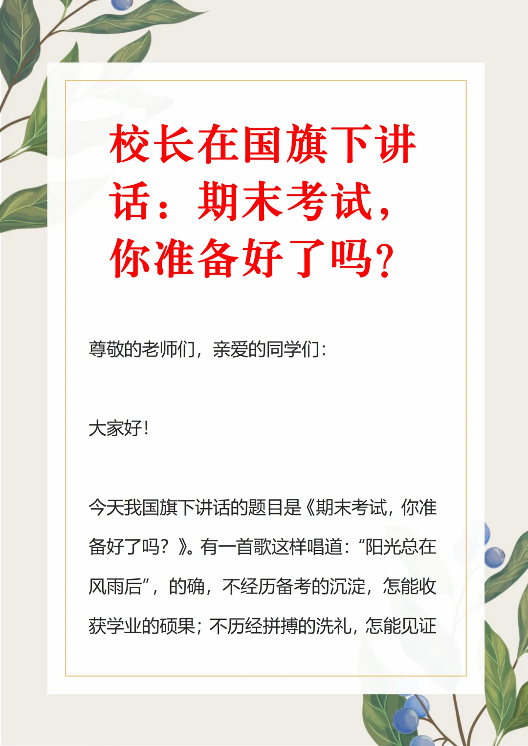 >校长在国旗下讲话:期末考试,你准备好了吗?