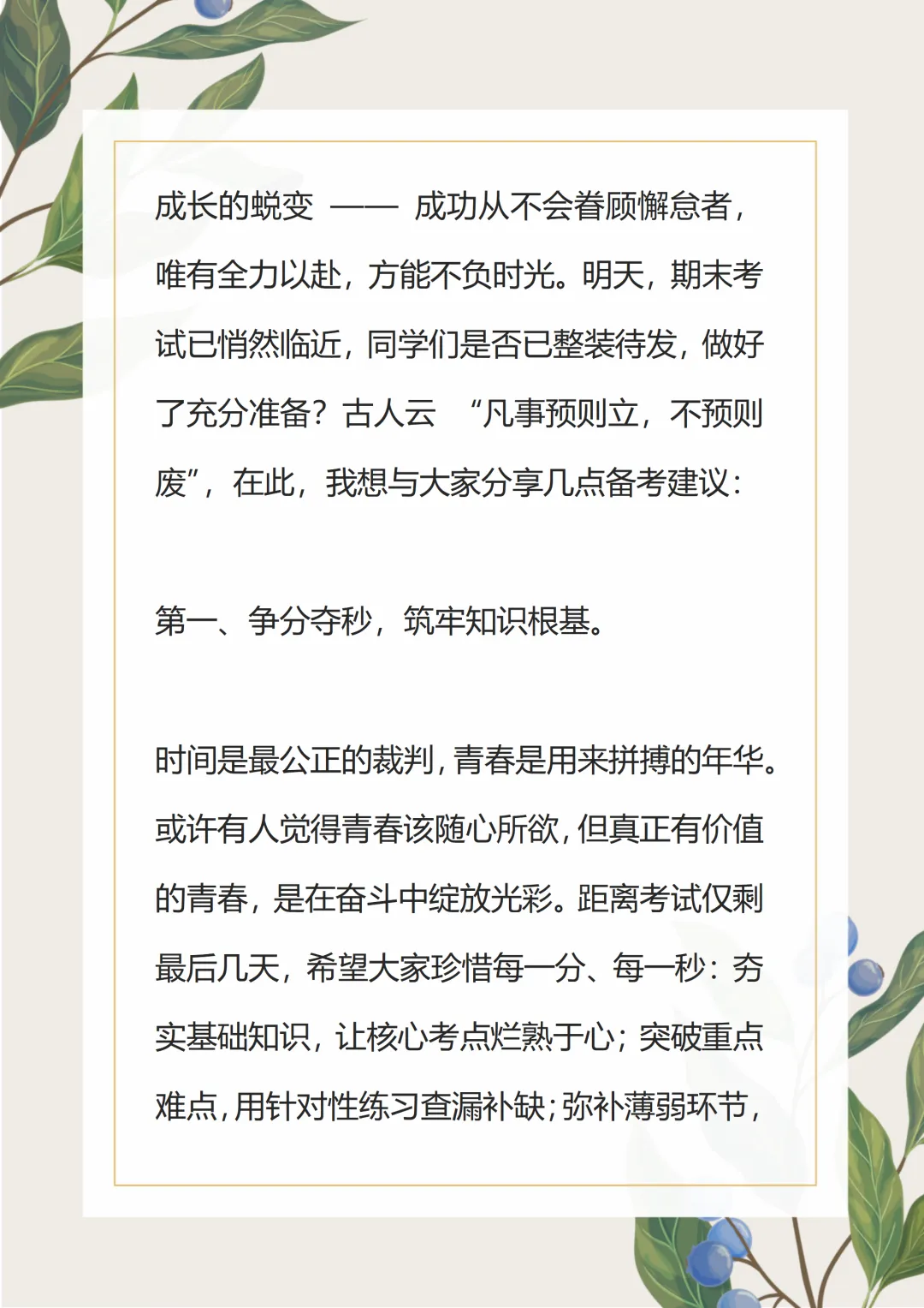 校长在国旗下讲话:期末考试,你准备好了吗?
