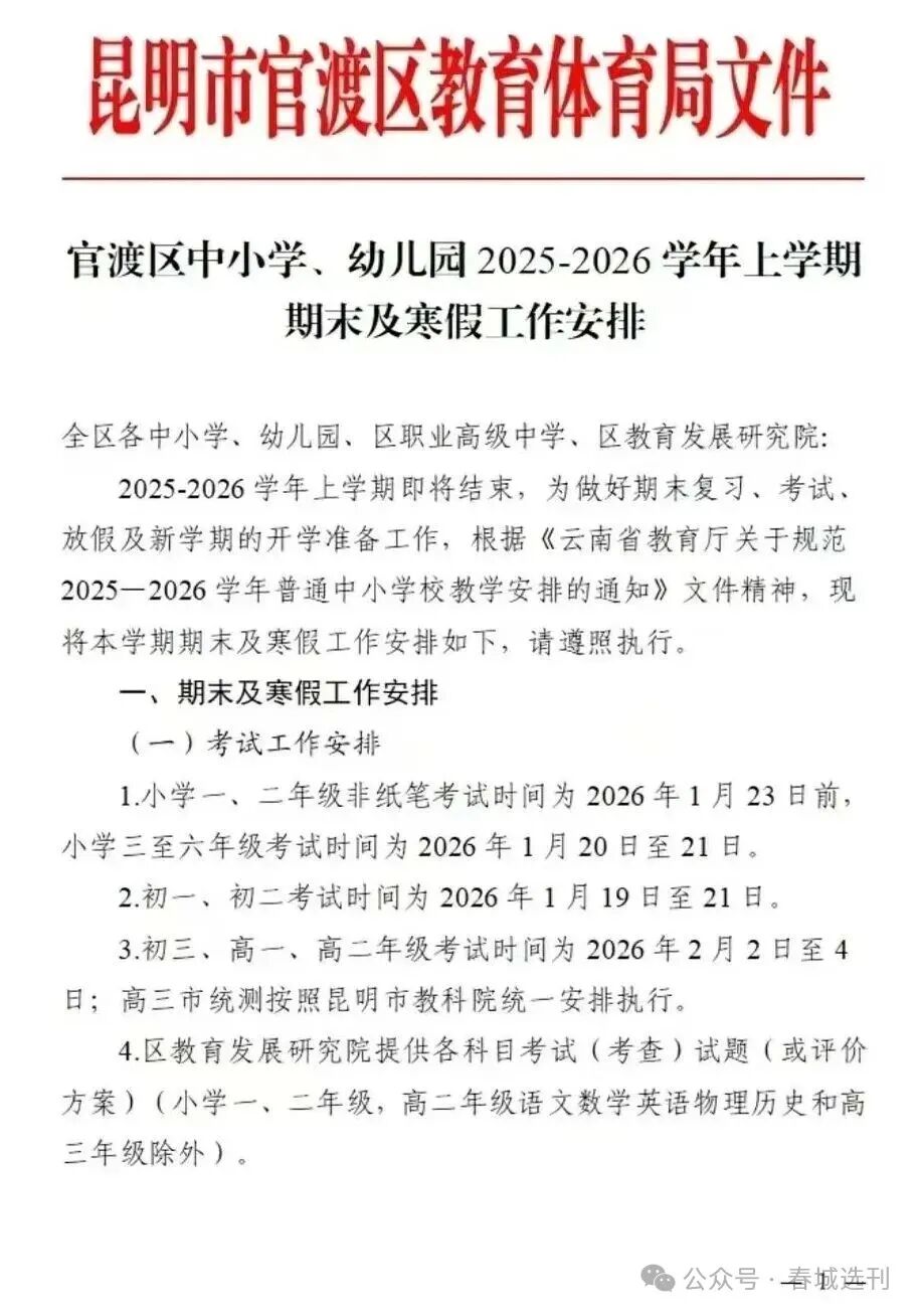 2026年寒假什么时候放?根据云南省《2025—2026学年普通中小学校教学日历》,小编做了整理⬇️