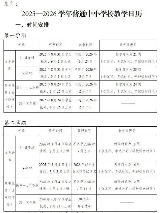 幼儿园及特殊教育学校参照义务教育学校安排执行,中职学校参照高中安排执行,寒暑假时间可根据当地实际适当调整。