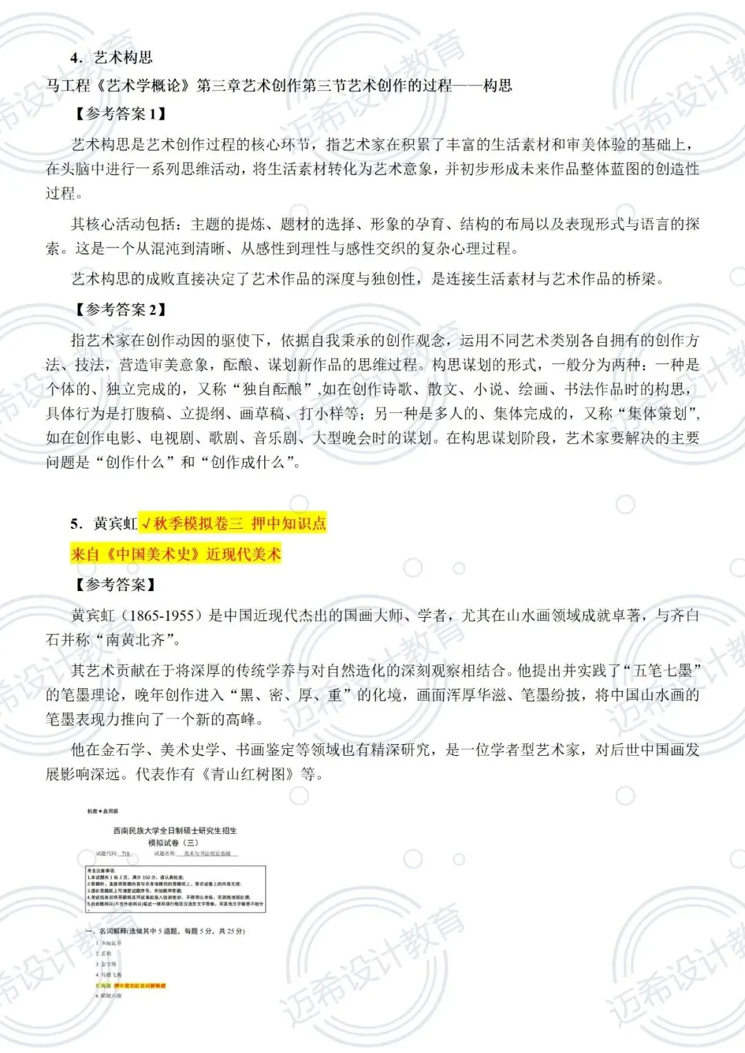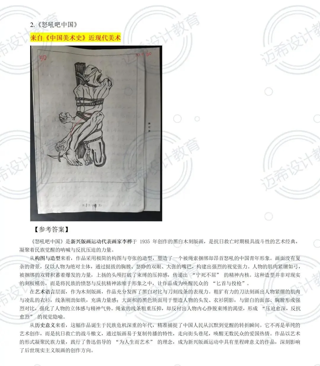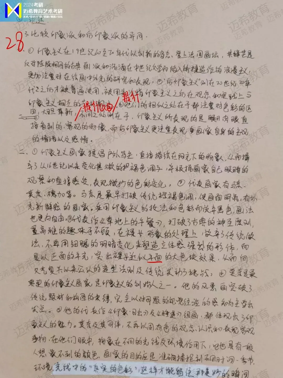 ✅ 718 冲刺课:20 课时专攻答题技巧,结合押题卷高频考点(鲁迅新兴版画、塞尚艺术特点)做专项练习,主观题按 “观点 + 案例 + 分析” 结构答题