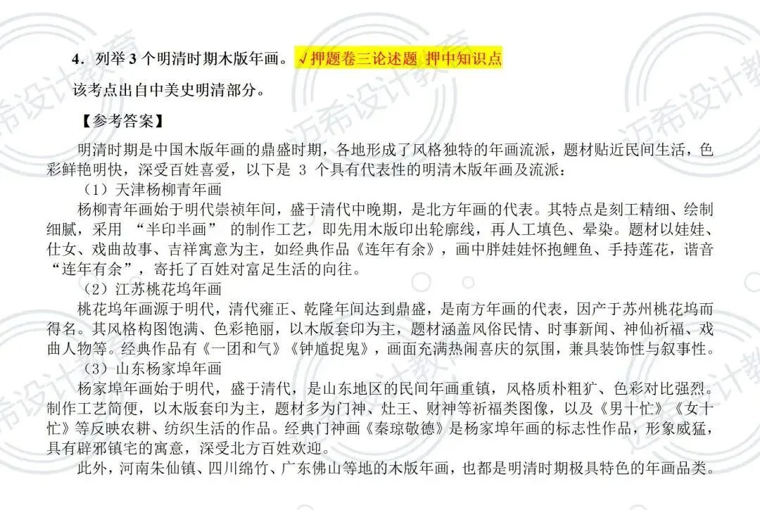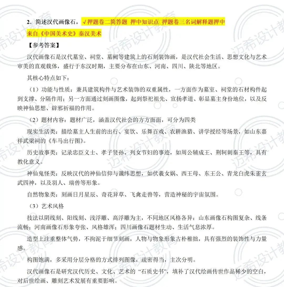 ▫️简答题(30 分):4 选 2 的核心题全押中!文人画、汉代画像石、马克思主义艺术辩证关系、明清木版年画,押题卷 + 模拟作业双重保障,答题思路直接套用~