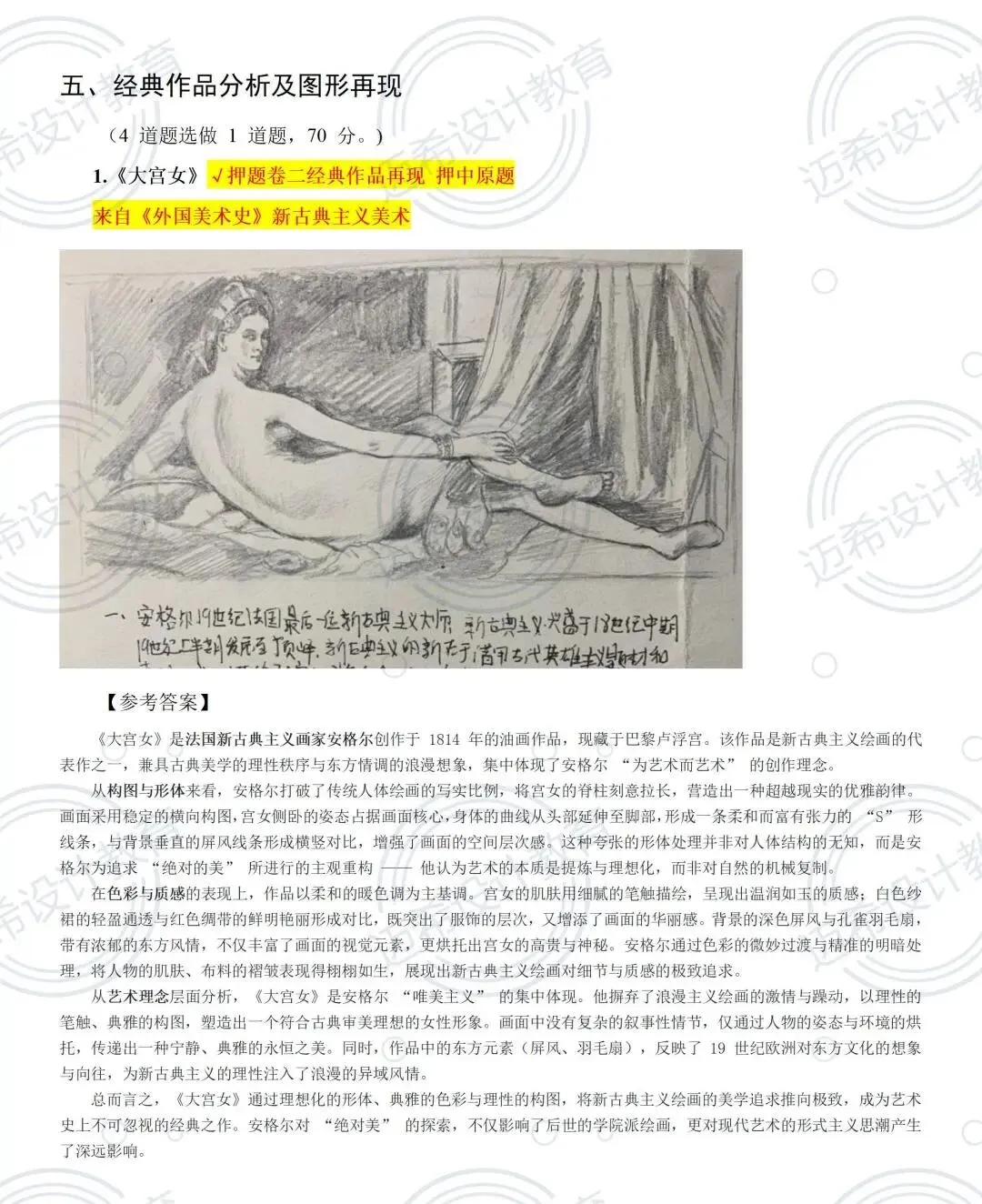 ▫️70 分大题(经典作品分析 + 手绘):直接押中《大宫女》原题!60 分手绘 + 10 分文字阐述,考前练过的模板直接用,这波血赚啊家人们!