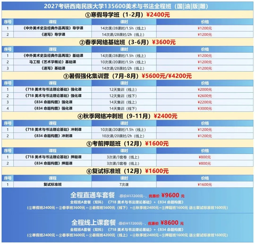 ▪️ 预算充足 + 想沉浸式学习:选全程直通车套餐(¥9600),线下暑假集训 + 送复试班,适合自律性一般的宝子