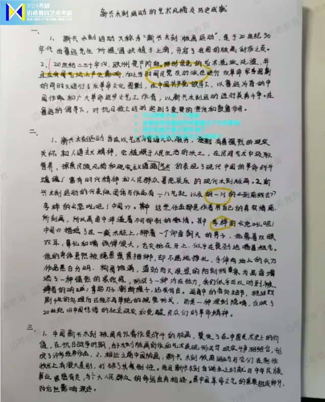 ▫️论述题(20 分):3 选 1 的 20 分大题,鲁迅新兴版画运动、塞尚艺术特点全是押题卷重点,不用临场瞎编,框架早就烂熟于心!