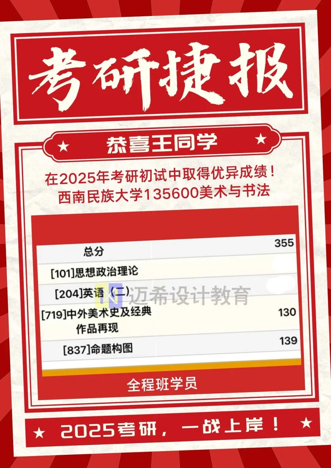 一分耕耘一分收获,迈希教育2022考研学员进入复试6人,拟录取6人。2023考研学员进入复试16人,拟录取12人。2024考研学员拟录取14人。2025考研学员拟录取3人。