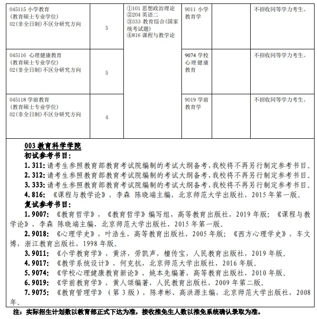 具有推荐免试资格的考生,以及我校“农村学校教育硕士师资培养计划”(简称“硕师计划”)推免生,须在国家规定时间内登录“全国推荐免试攻读研究生(免初试、转段)信息公开暨管理服务系统”(网址:https://yz.chsi.com.cn/tm)填报志愿并参加复试。在规定截止日期仍未被招生单位录取的推免生,其推免资格自动失效。已被招生单位录取的推免生,不得再报名参加当年全国统一考试、单独考试。