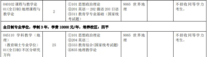 全日制专业学位 | 出版、新闻与传播、法律(非法学)、法律(法学)、电子信息、资源与环境、教育、翻译、体育、旅游管理硕士、国际中文教育硕士 | 10000元/生/年 | 3 | |