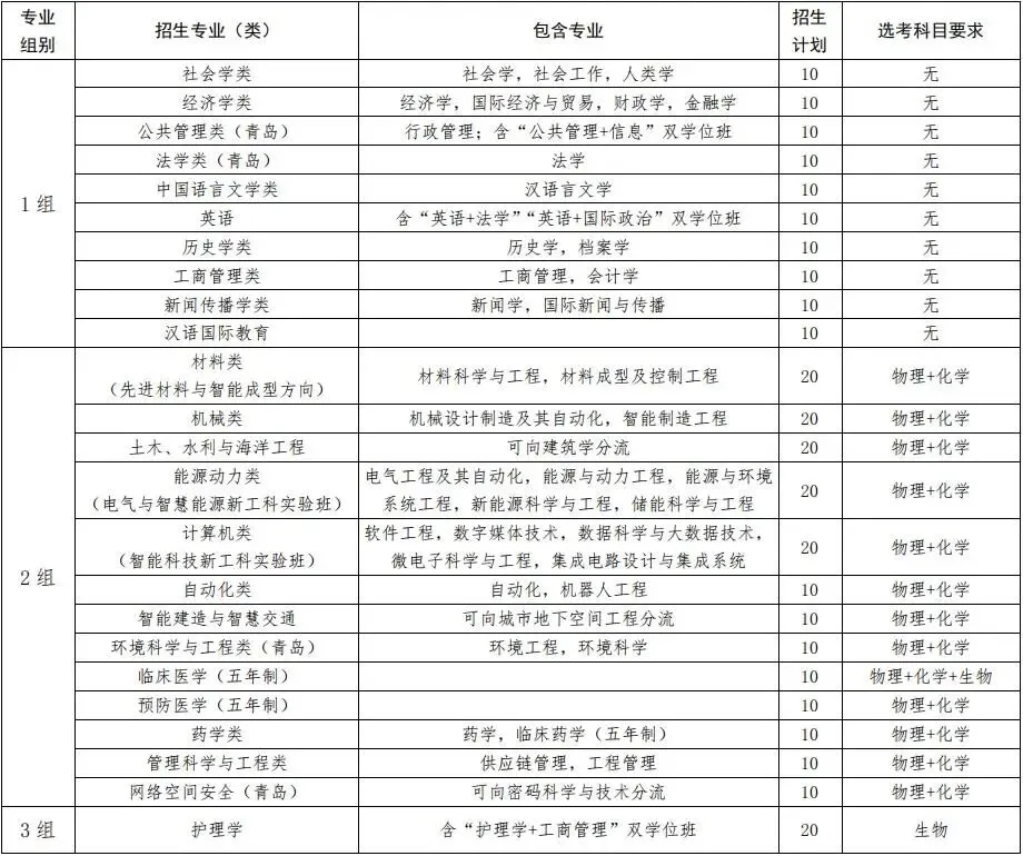 山大2025年在山东省综合评价招生计划300人,专业如下: