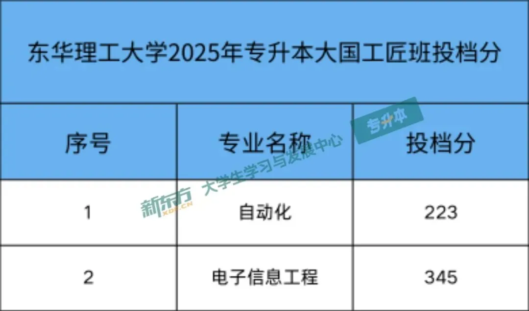 2025年东华理工大学专升本大国工匠计划投档分公布,共2个专业进行招生。其中,自动化投档分为223分,电子信息工程投档分为345分