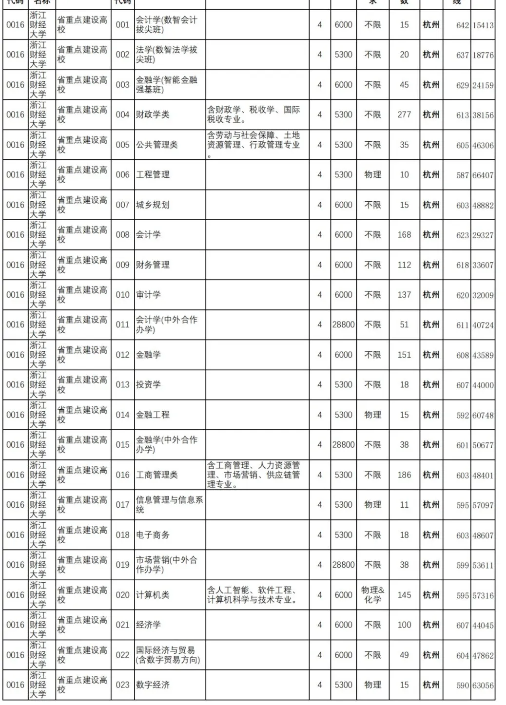 >浙江财经大学2025年各类别录取分数线汇总