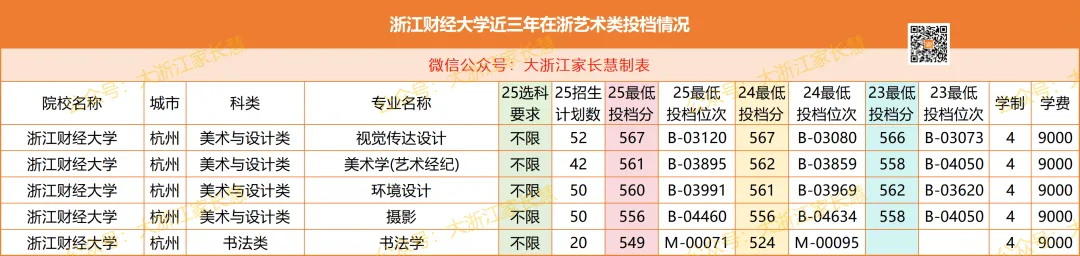 浙江财经大学2025年艺术类在浙投档情况