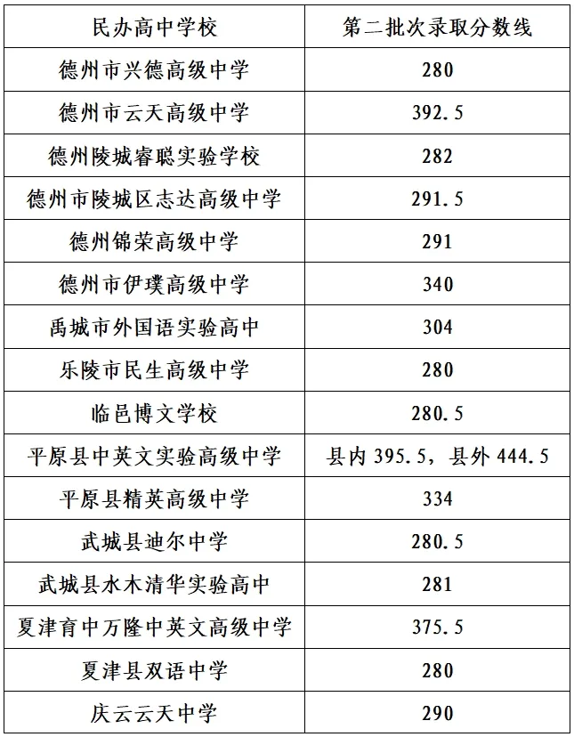 德州市2025年民办普通高中学校第二批次录取结果于7月15日12:00正式开放查询,现就有关情况说明如下: