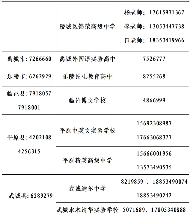 (四)有关普通高中招生政策问题,可向当地县(市、区)教体局或民办普通高中学校电话咨询。(工作日:上午8:30-12:00,下午14:00—18:00 )