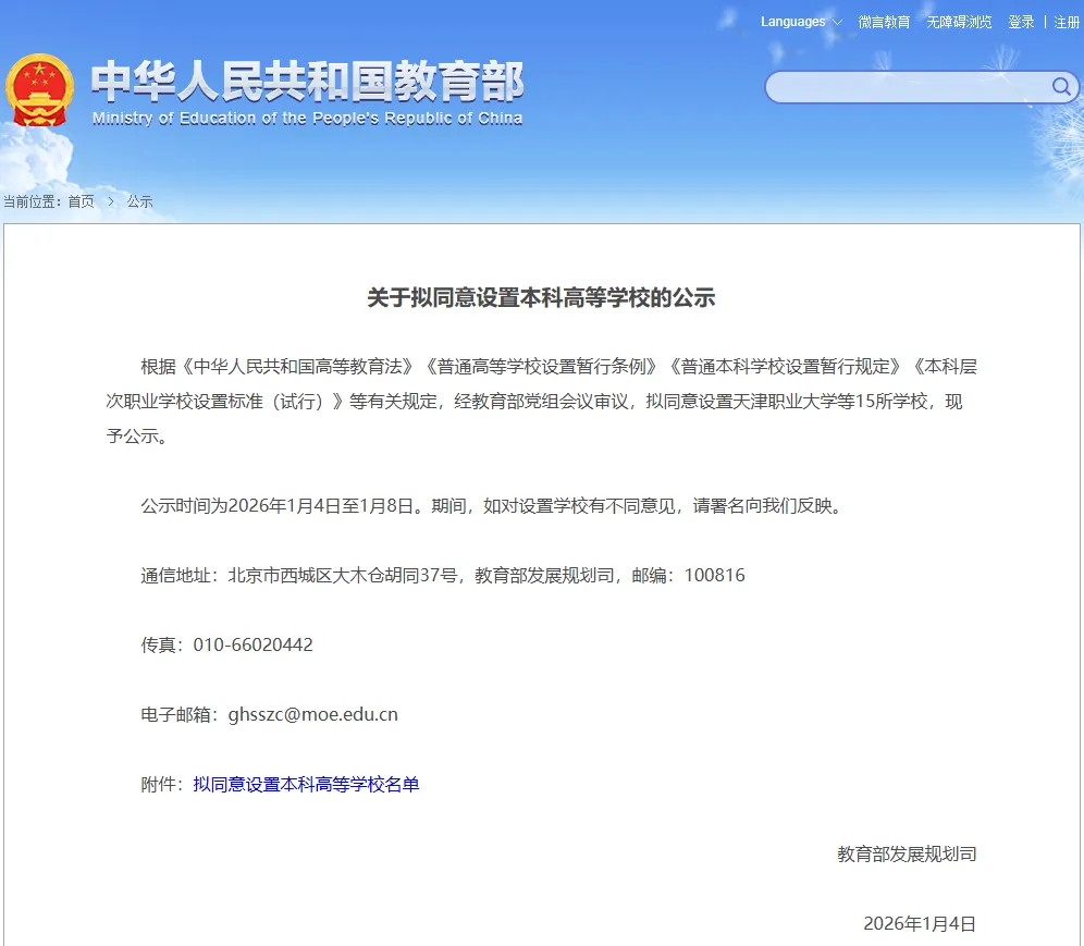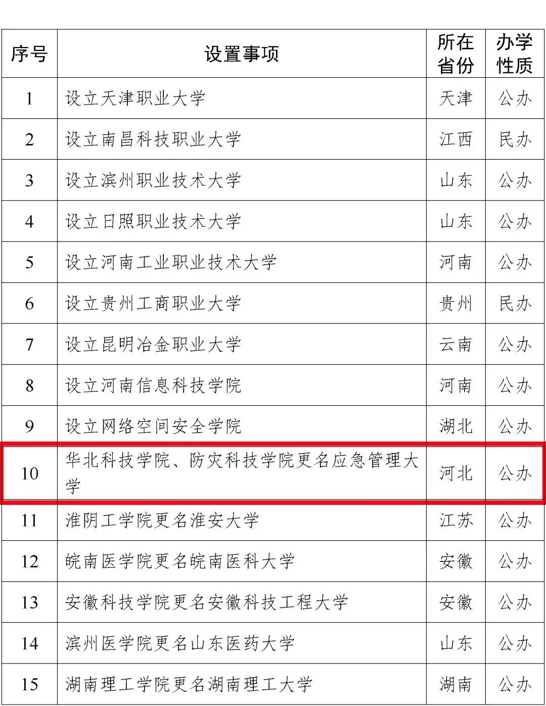 1月4日,教育部发布《关于拟同意设置本科高等学校的公示》。拟同意华北科技学院、防灾科技学院更名为应急管理大学。