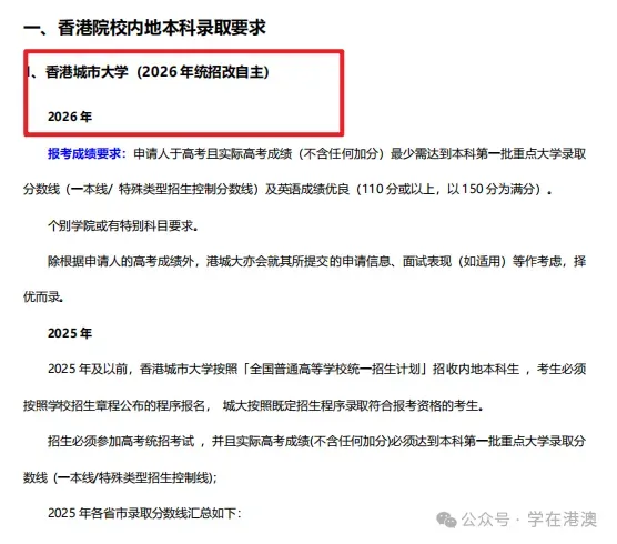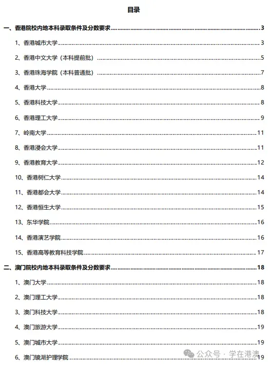 🔍15所香港院校、6所澳门院校的具体录取分数要求是什么?不同院校的英语成绩要求也不同吗?今天学在港澳特为大家带来《香港澳门地区院校内地本科招生录取分数要求》电子资料,帮助大家全面了解港澳高校面向内地的招生政策、录取条件及分数要求等干货内容。