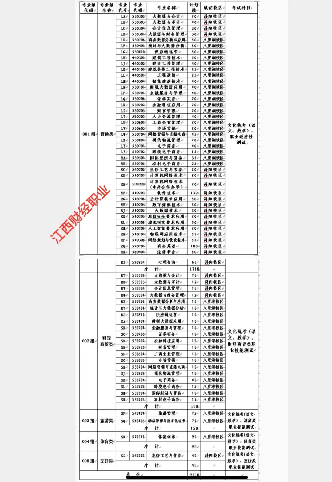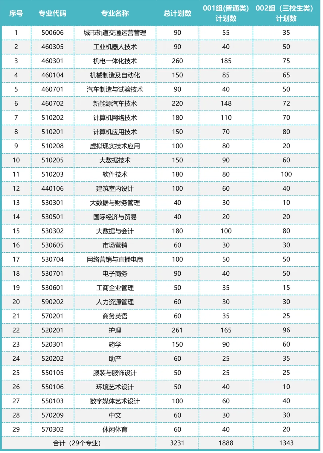 2025年江西省单招计划数为120人,具体分专业计划如下表:
