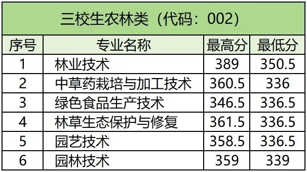 (002)三校生农林类专业组336分;