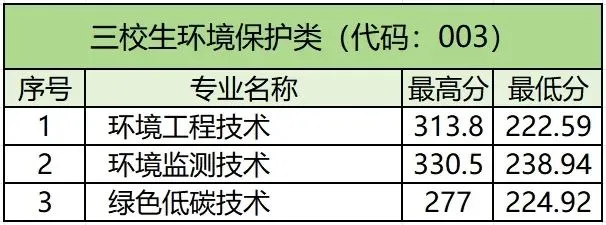 (003)三校生环境保护类专业组222.59分。