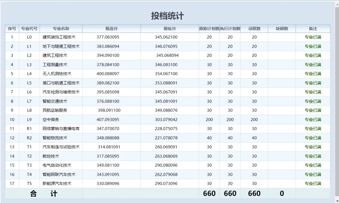 2.已达到最低录取控制线的考生,按照“分数优先,遵循志愿”的原则,根据考生分数从高到低依次录取,考生所填志愿已满,服从专业调剂的,学校将调剂至其他专业,考生所填志愿无法满足且不服从调剂的,学校不予录取。