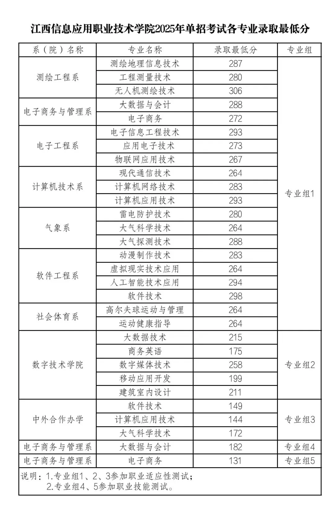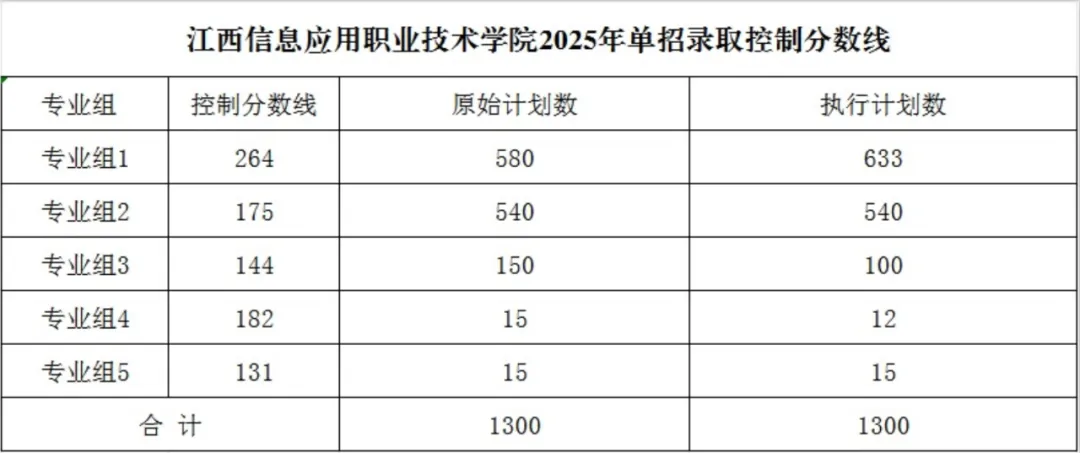 2025年单招考试分6个专业组,录取遵循组内录取,不跨组录取或调剂,各组控制线如下: