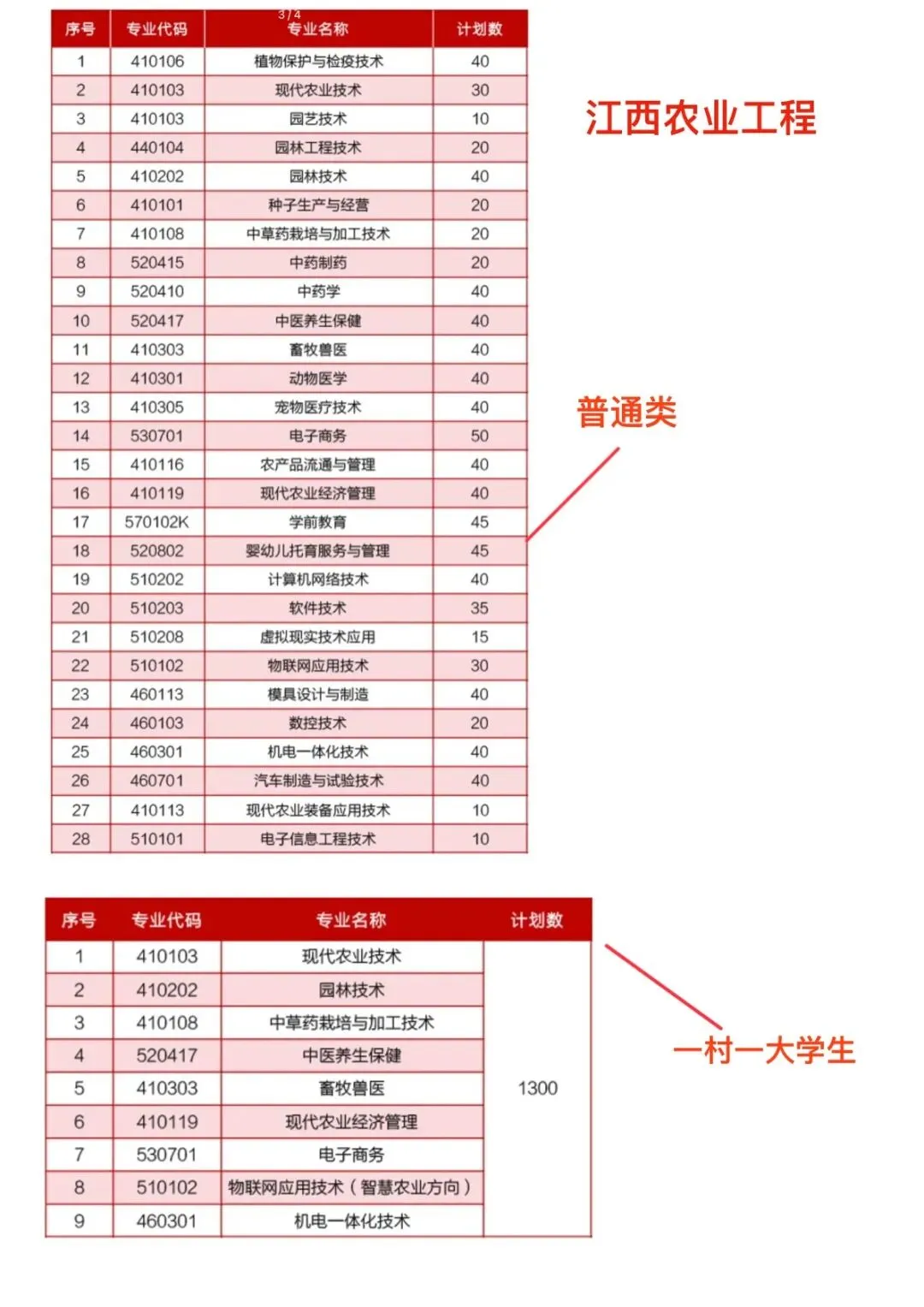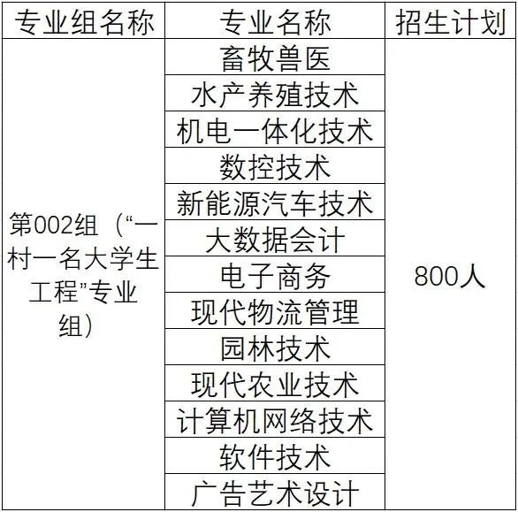 2.第002组(“一村一名大学生工程”专业组)招生专业及计划数(专业列表2)