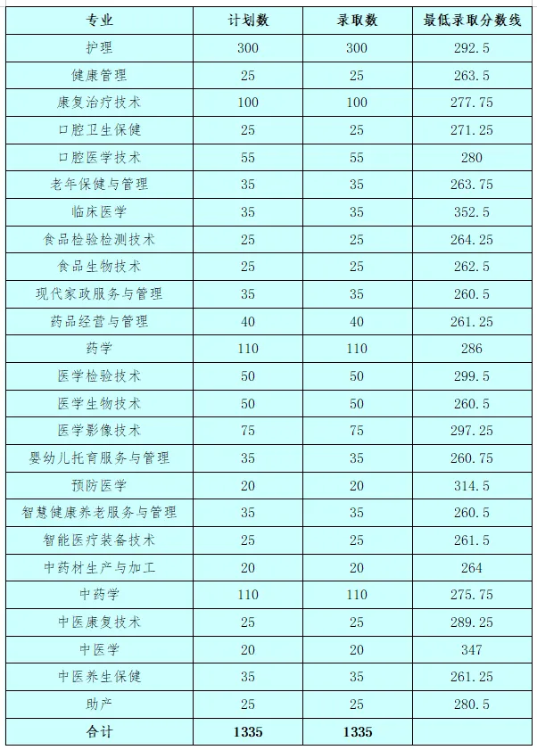 2025年单独招生计划共1321人(其中医药卫生类1266人、体育类55人),招生专业和计划数最终以省考试院公布的为准。所有专业学制三年。