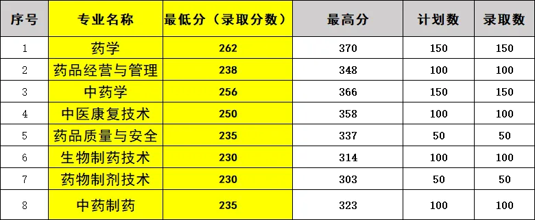 各专业录取分数线