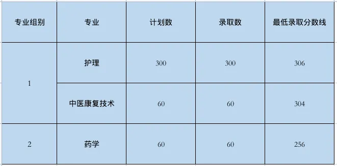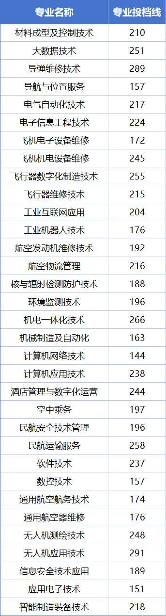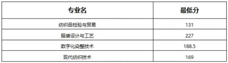 三校生类分为4个专业组,各组录取最低控制分数线如下:
