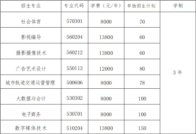 招生计划为55人。考试科目:文化统考+职业技能测试(体育类)。