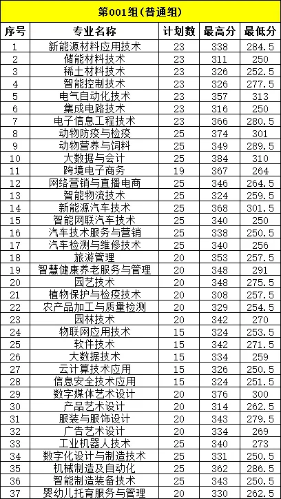 (一)普通类001组最低录取控制分数线337分,各专业最低分见下表。