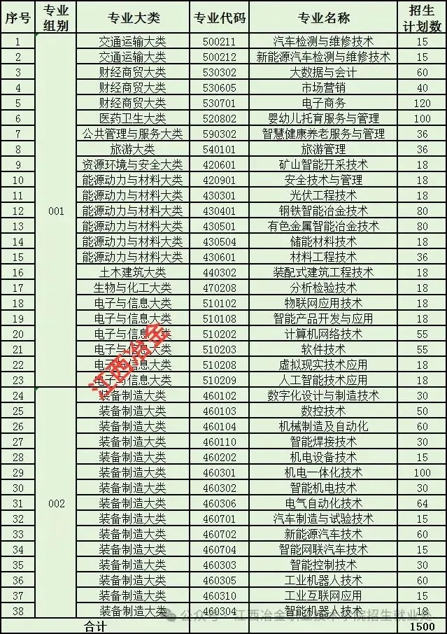 1 | 001重点专业组 | 460112 | 增材制造技术 | 主干+服务“1269”专业 |