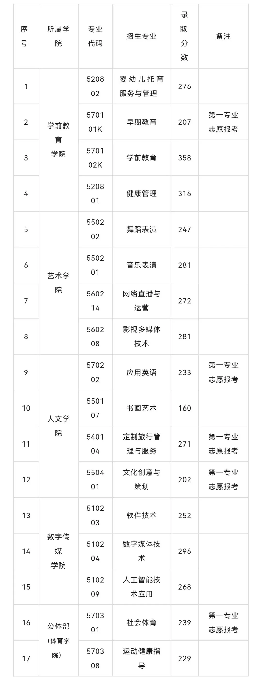 普通生A01综合类244.5分、普通生A02财经商贸大类184分、普通生A03教育与体育大类257分、三校生001综合类244分、三校生财经商贸大类186分、三校生教育与体育大类316分。按照学院2025年单独招生录取原则,在单招考试成绩达到录取控制分数线的考生中,遵循分数优先原则,按考试成绩从高到低的顺序依次满足考生的专业志愿。