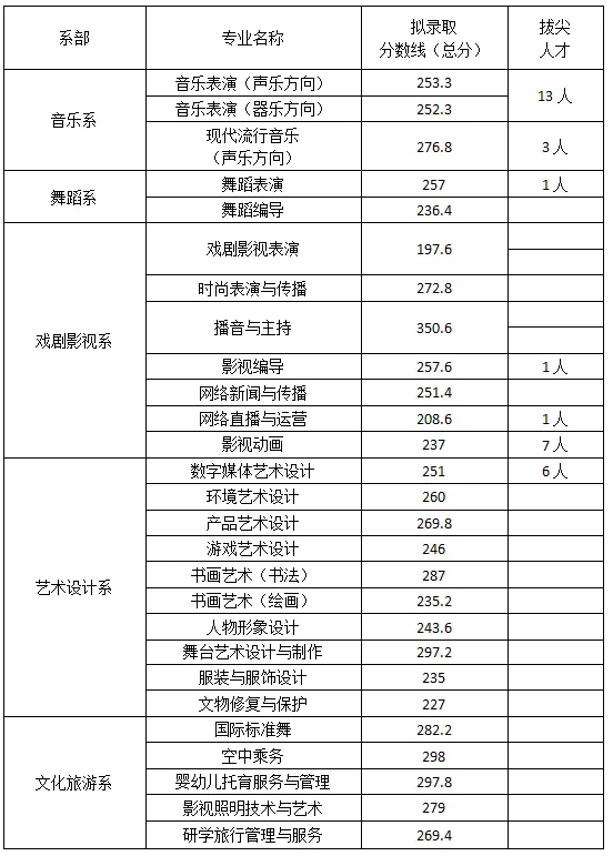 根据江西省教育厅《关于做好全省2025年高等职业教育单独招生工作的通知》(赣教考字〔2023〕28号)文件要求,结合我校2025年高职单独招生简章和考试方案,各专业组提档分数线划定如下:艺术设计类200分,音乐类243分,舞蹈类292分,体育类225分,普通类180分。