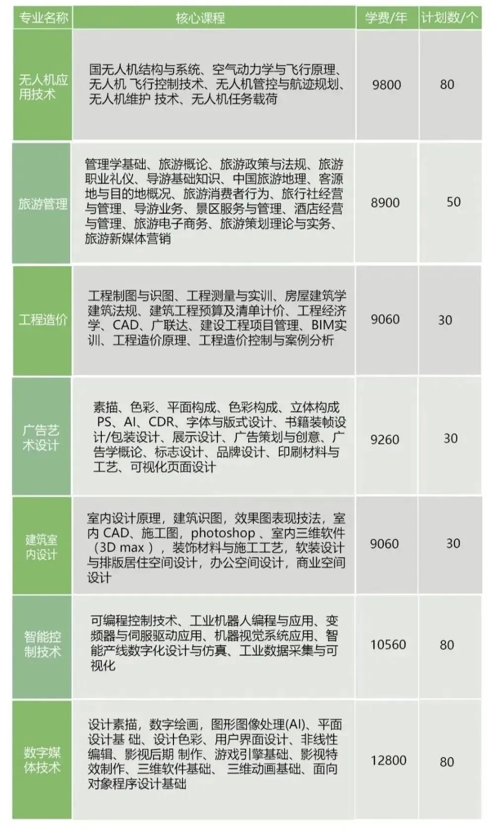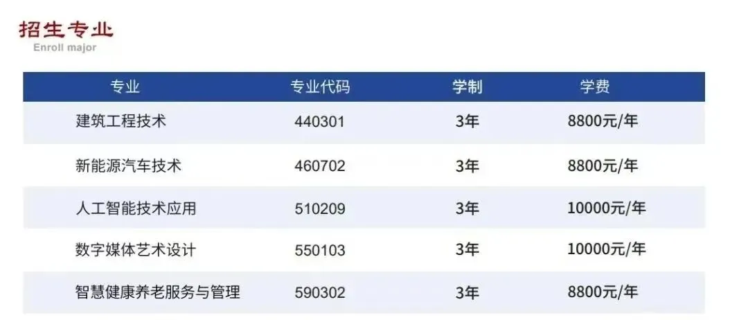 2.各专业学费均为5000元/年。