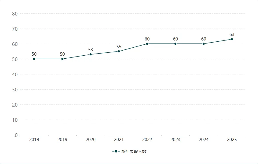 2025年在浙江共录取63名高中理科毕业生(选考物理和化学),通过综合评价招生模式录取60人(其中中外合作办学专业录取6人),通过普通本科批次录取3人。普通本科批次投档线660分,省排位6600名。
