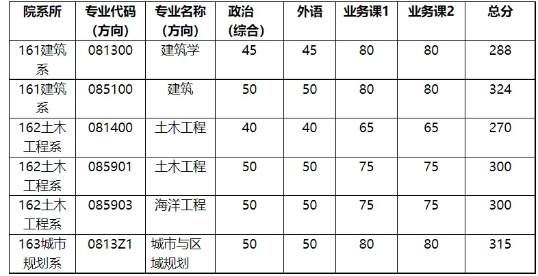 二、建筑与土木工程学院复试分数线