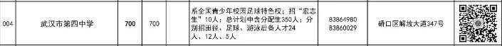 硚口区共计两所一批次学校,其中十一中为九大名高之一,武汉市第四中学为一批次省示范高中,四中是袁隆平的母校,也是一所体育特色学校,学校环境优美,历史悠久,建设有丰富的各类体育场馆。硚口区教育局为了振兴区域经济,保住十一中岌岌可危的九大身份,对十一中招生给予了大力支持。四中招生主要靠自己,显得尤为艰难,年年有老师跨区发传单积极宣传,但效果甚微,分数线在一批次守门员位置徘徊。学校领导和老师对于工作还是积极进取的,目前就读体验反馈也还不错,是刚过线省示范的不错选择。