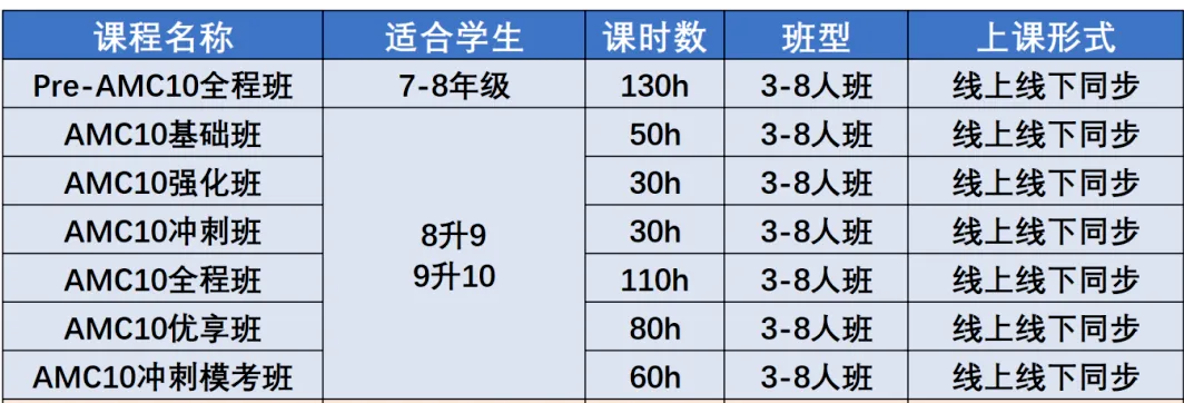 犀牛国际教育针对AMC10数学竞赛开设了针对性的培训课程,线上线下同步授课。小班课一般3-8人,此外也有1对1定制课程