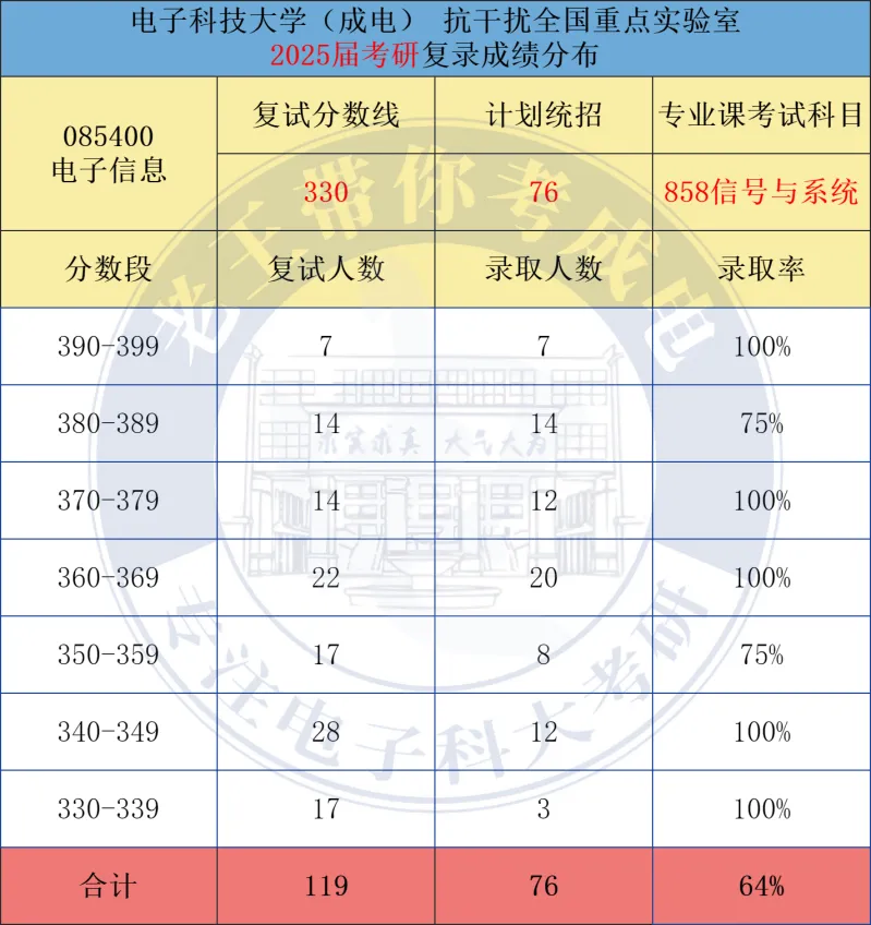 此外,作为成电的优势方向,858方向有很多导师研究团队可供选择,大家可以在复试准备阶段,在成电官网和论坛等平台查看导师信息和评价。好导师很抢手,所以建议大家尽快行动,和导师取得联系,抢占先机。