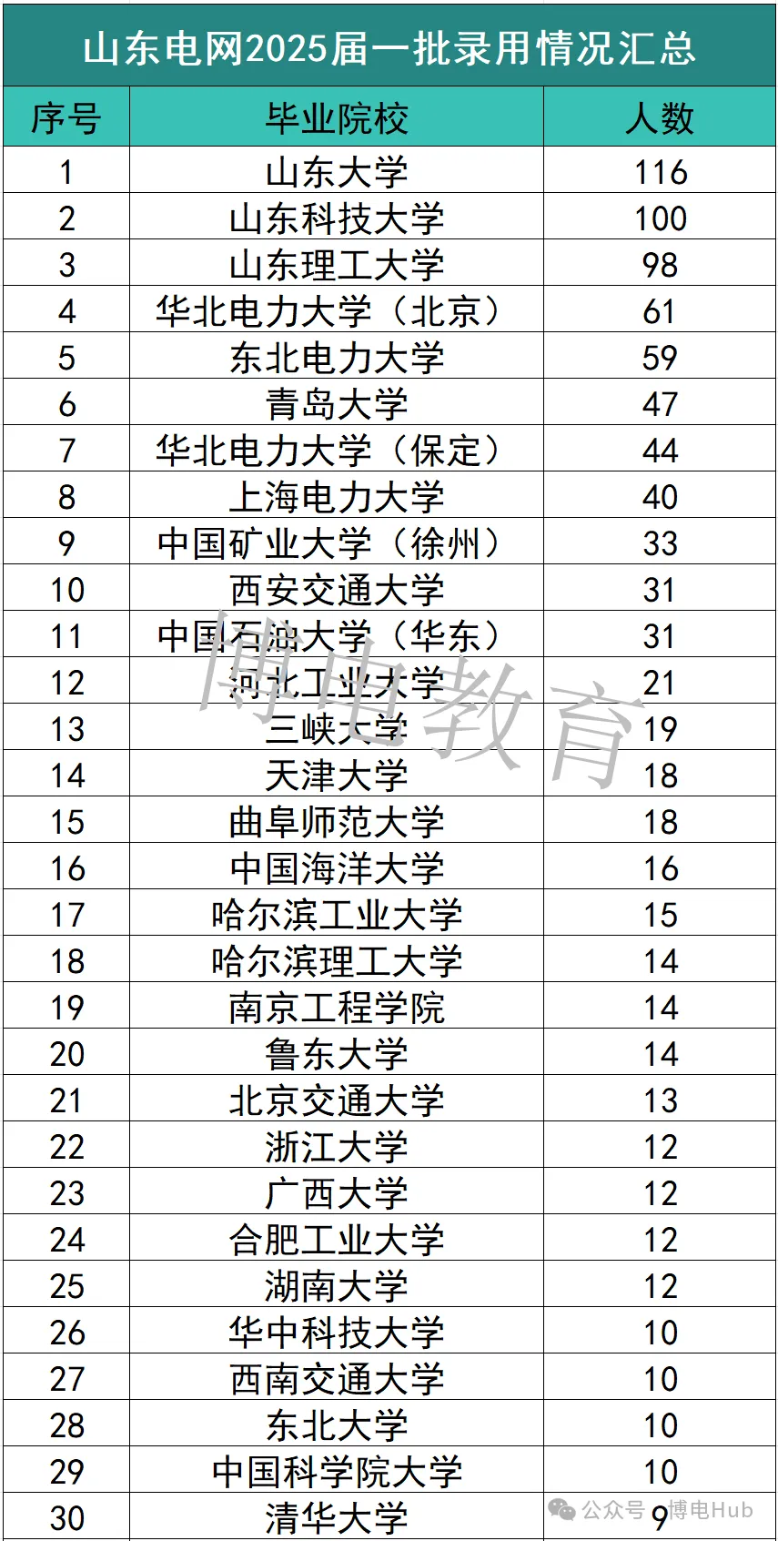 山东电网2025届一批录用情况汇总如下:其中山东大学、山东科技大学、山东理工大学的录取人数排名前三!而山东大学录取人数最多!共计录取116人!山东科技大学录取100人,山东理工大学录取98人!另外,曲阜师范大学25届一批录取18人,排名第15。