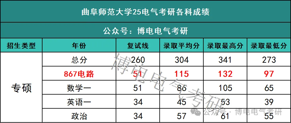 25考研曲阜师范大学电气专硕普通考生进入复试7人,拟录取7人,进入复试考生100%录取;录取考生中,最高分为341分,最低分为273分,平均分为304分。