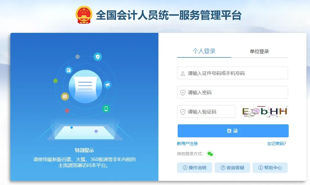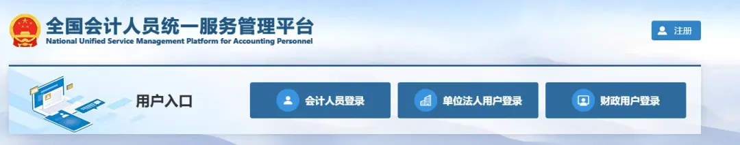 1️⃣注册/登录“全国会计人员统一管理服务平台”!