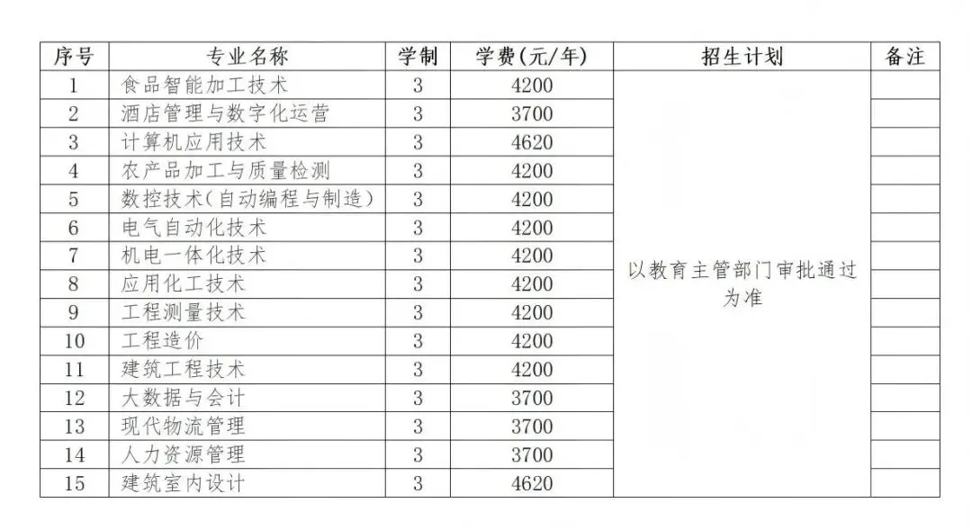 附件:2026年对口招生专业一览表