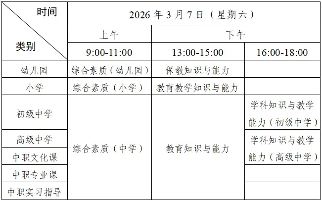 4.2026年上半年中小学教师资格考试(笔试)科目代码列表