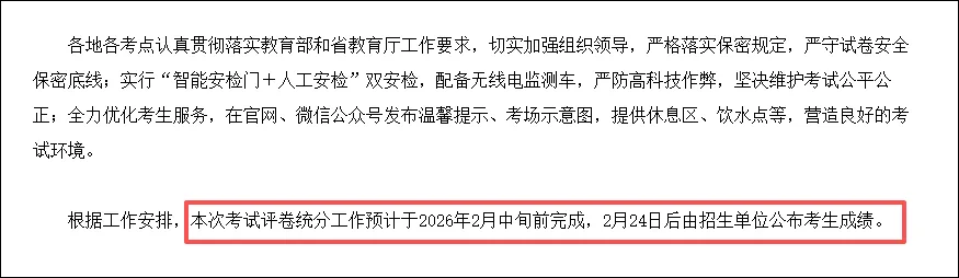 比如江西省教育局:考试评卷统分工作预计于2026年2月中旬前完成,2月24日后由招生单位公布考生成绩。