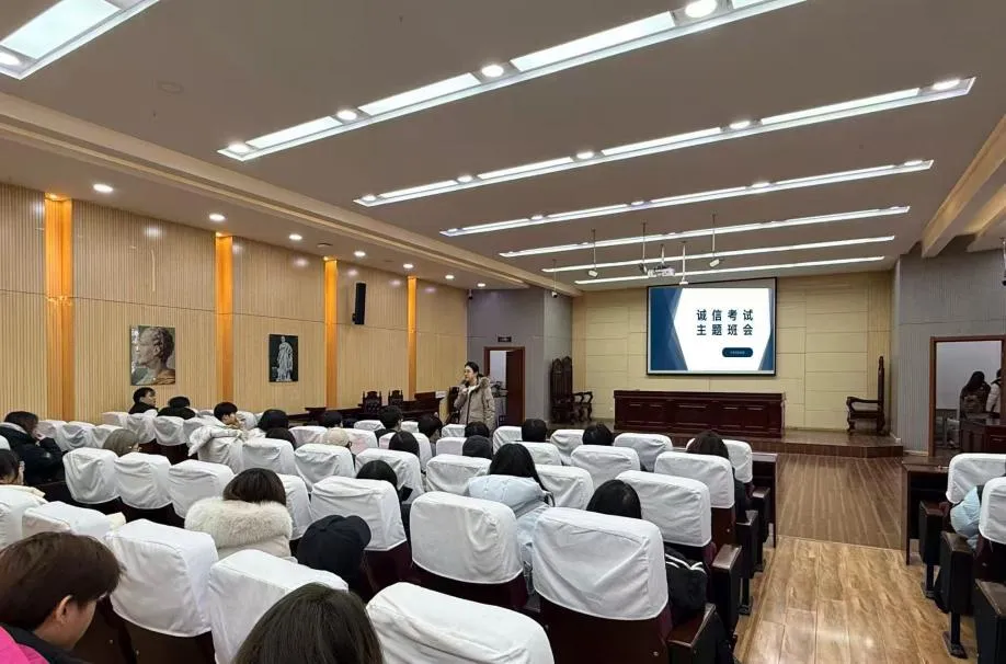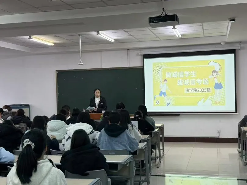 为进一步加强学风建设,引导学生树立诚信考试的理念,营造公平公正、诚实守信的考试氛围。近日,我院积极组织开展“诚信考试”主题教育活动。由法学院辅导员周玥、于欢和谭舒月老师担任主讲,全体在校学生参与,共同筑牢诚信考试的思想防线。