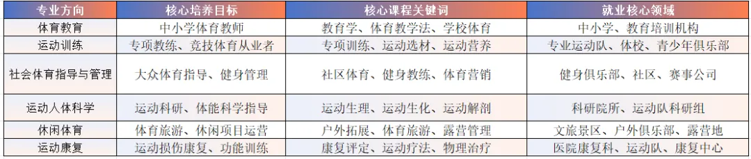 选好路径后,专业和院校该怎么挑?从专业来看,根据《普通高等学校本科专业目录》,体育学类专业隶属于教育学门类,包括体育教育、运动训练、社会体育指导与管理等核心专业;此外,管理学门类下还有体育经济与管理等交叉专业,可供考生选择。