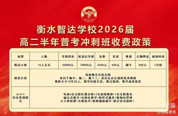 在升学竞争日益激烈的今天,选择合适的学习模式和辅导机构成为关键。衡水智达学校以“精品小班”为核心特色,专注为初高中学生提供针对性强、效率高的升学解决方案。无论是寒假能力提升,还是高考冲刺备考,这里都能为学生量身定制学习路径,让每一份努力都精准对接目标。