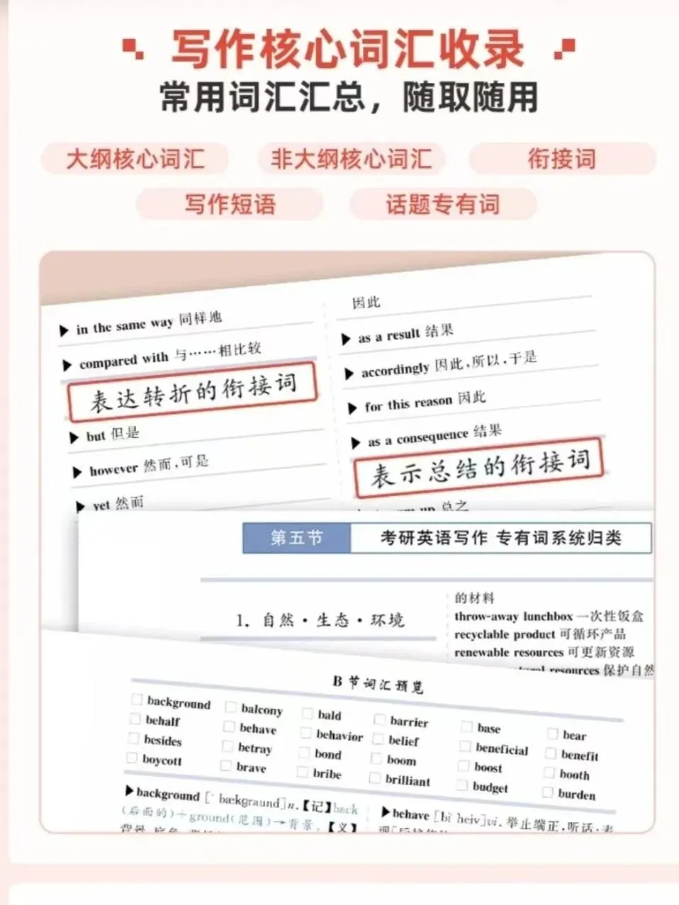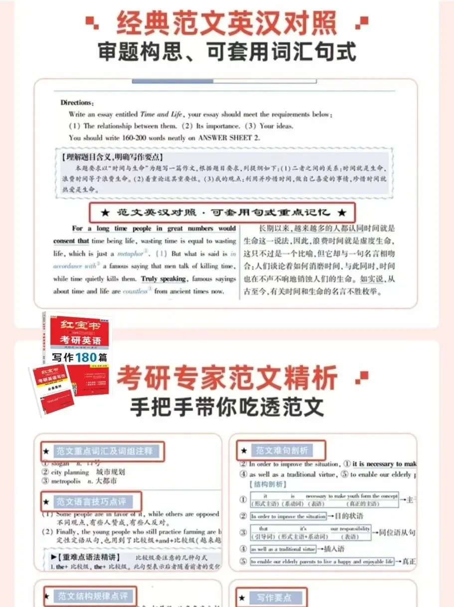 🔸红宝书的写作书涵盖大、小作文全题型,既有实用模板,又有高分范文和拓展素材,逻辑清晰还好模仿~